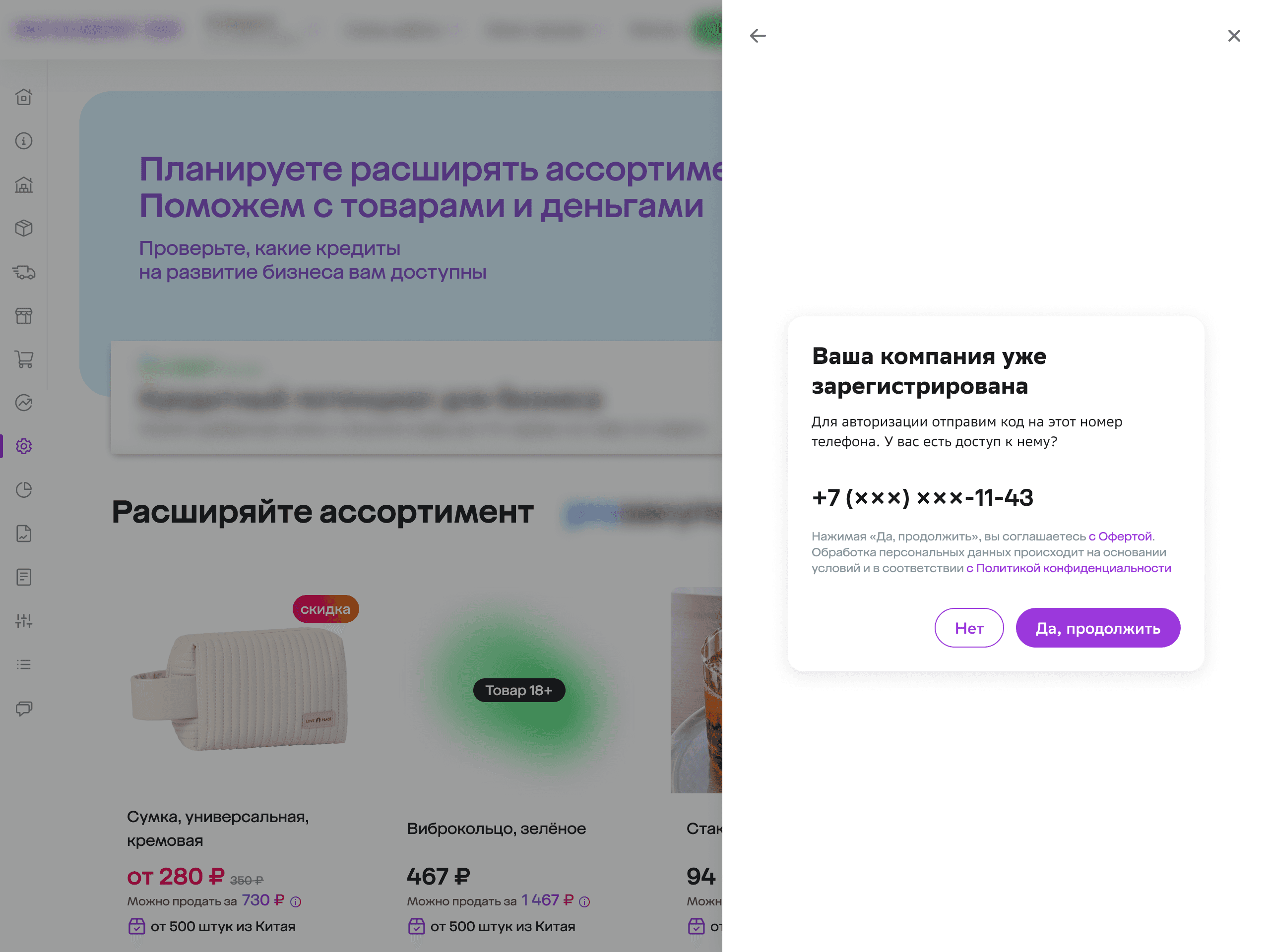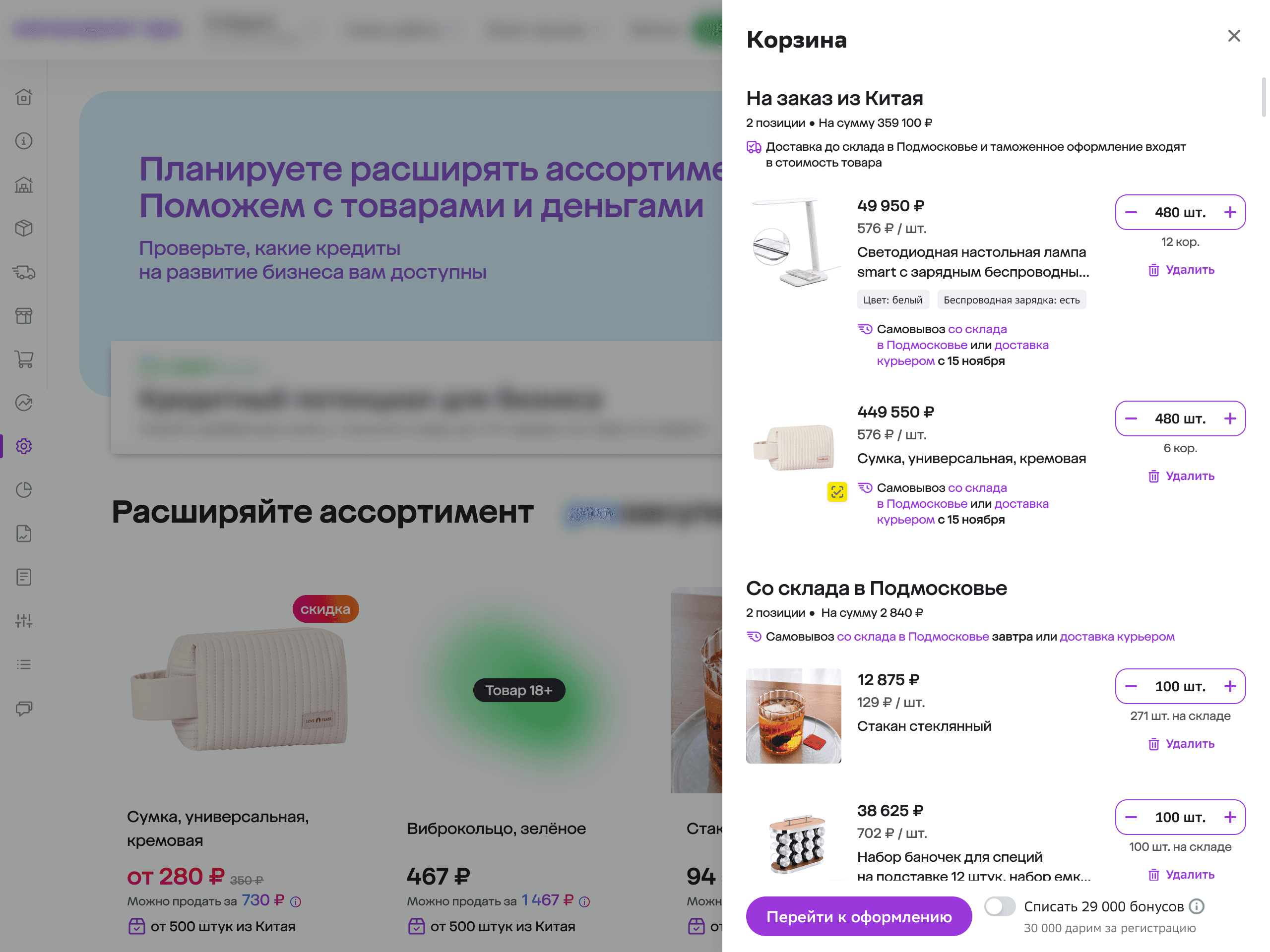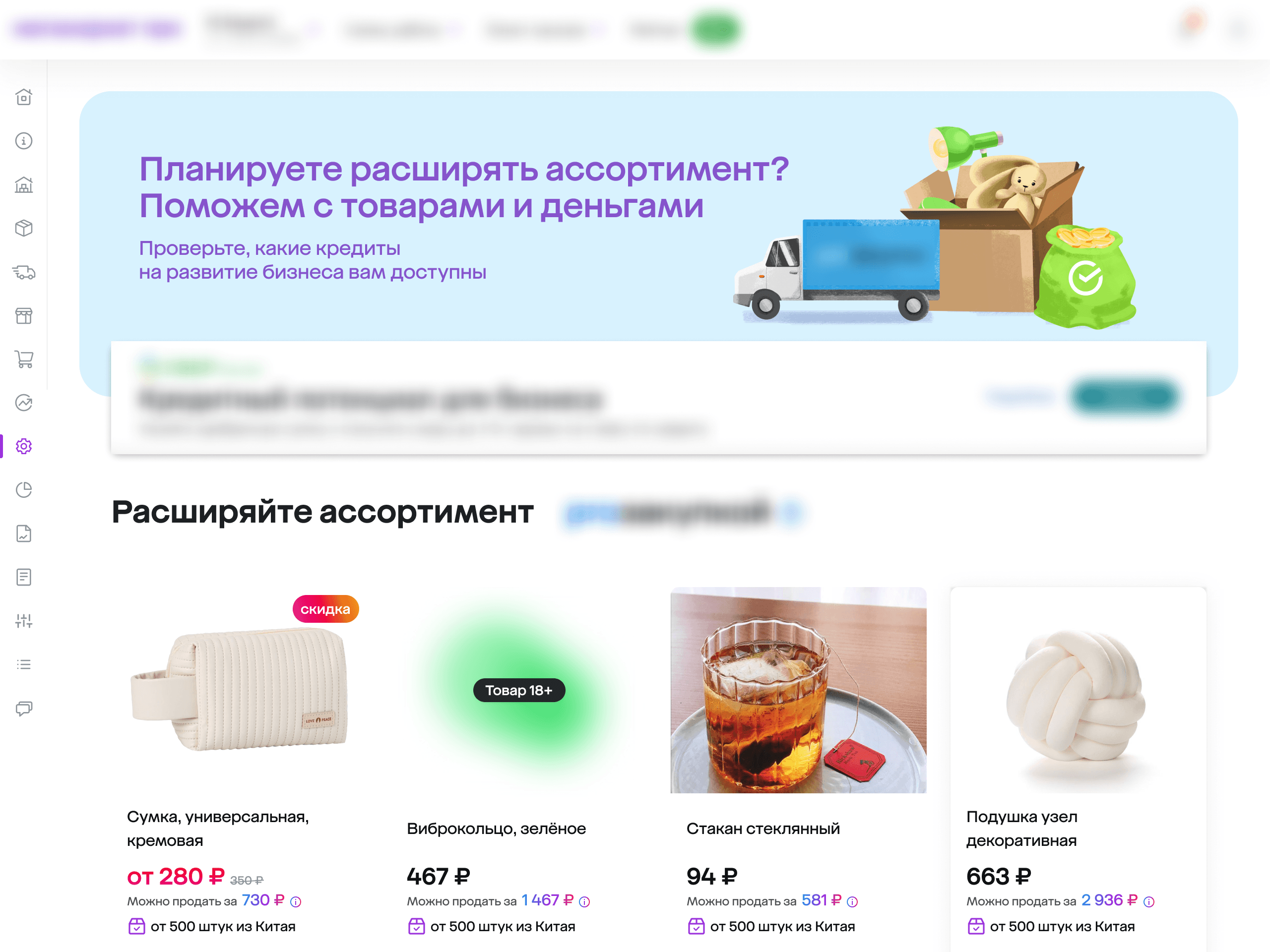Связать два сервиса в одну экосистему. Бизнес хотел закрыть цикл: «взять кредит в банке-партнёре → закупить товар на B2B-площадке → выставить его на продажу в этом же кабинете».